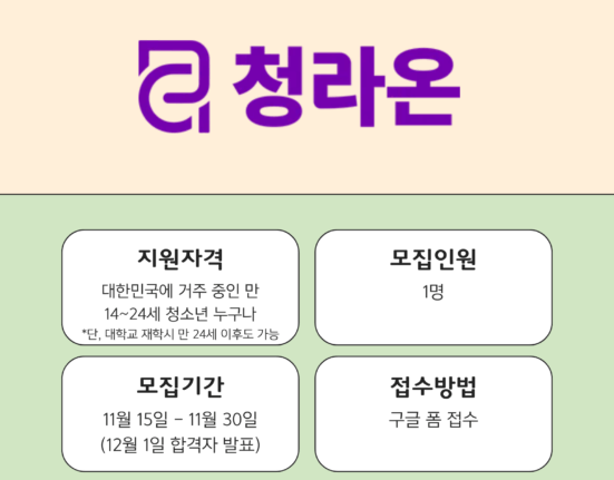 청소년단체 “유니엄” 산하 청소년 언론 청라온(단장 안창민)이 2026년을 함께 운영할 청소년 사무국원을 11월 15일부터 11월.
